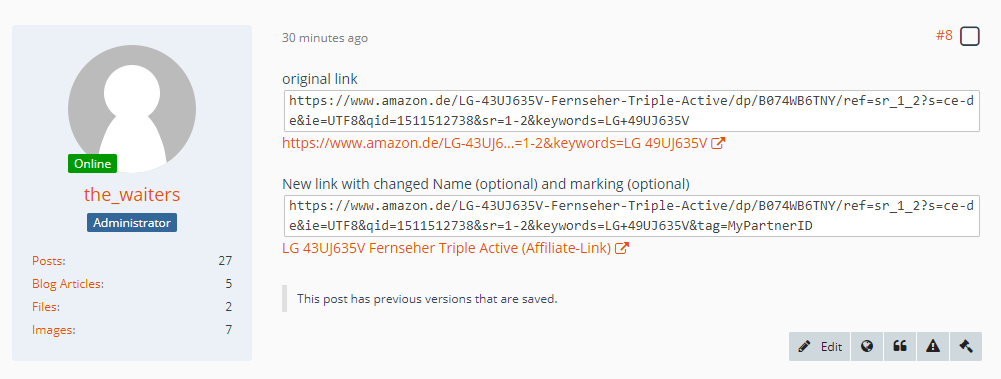 Durch diese Erweiterung für die WoltLab Suite 3 können Sie Affiliate-Links von Dritten verhindern, schnell und einfach eigene Affiliate-Links setzen oder sogar vorhandene Affiliate-Links in eigene umschreiben. Auf diese einfache Weise lässt sich kinderleicht Geld im Internet verdienen.