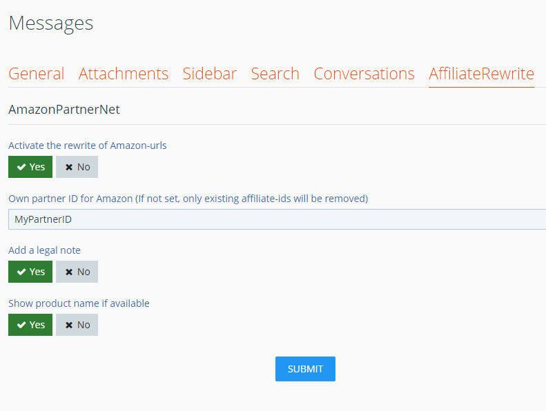 Konfiguration -> Nachrichten -> AffiliateRewrite