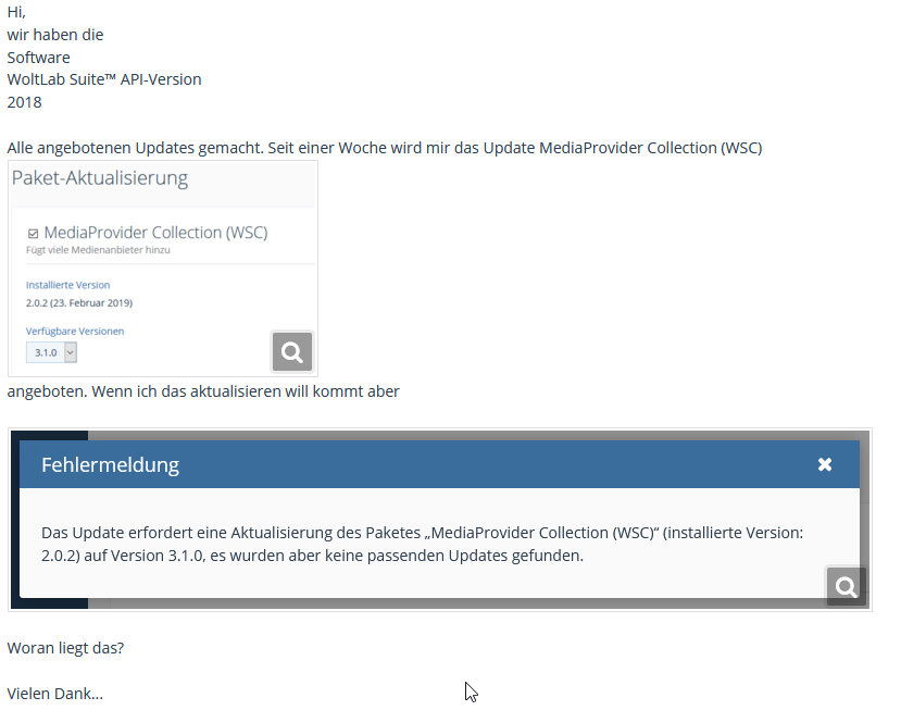 Ich habe heute Woltlab auf Version 5.3 geupdatet, die MediaProvider Collection kann ich allerdings wegen