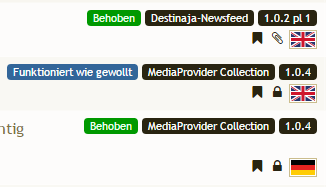 Wenn das Label Umgesetzt oder Behoben gesetzt wird, zeigt die Versionsangabe, wann diese Änderung mit welcher Version einfließt/eingeflossen ist. Veröffentlichte Versionen werden immer mittels News und/oder im Forum Neuigkeiten & Ankündigungen bekannt gegeben. Die Aktuelle Version eines Plugins, kann im Shop-System bei dem entsprechenden Erweiterung eingesehen werden.
