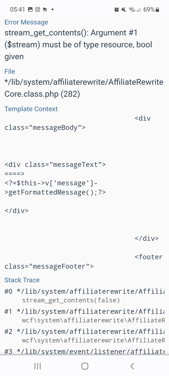 Stack Trace: [{"file":"\/homepages\/45\/d501707749\/htdocs\/Forum\/wcf\/lib\/system\/affiliaterewrite\/AffiliateRewriteCore.class.php","line":282,"function":"stream_get_contents","args":[false],"class":"","type":""},{"file":"\/homepages\/45\/d501707749\/htdocs\/Forum\/wcf\/lib\/system\/affiliaterewrite\/AffiliateRewriteCore.class.php","line":322,"function":"getFopenReponse","class":"wcf\\system\\affiliaterewrite\\AffiliateRewriteCore","type":"->","args":[{"VENDOR":"[redacted]","NODEHREF":"[redacted]","NAME":"[redacted]","NAMETYPE":"[redacted]","TAG":"[redacted]","AFFILIATE":"[redacted]","LEGAL":"[redacted]","MATCH_AMAZON_PRODUCTLINK":"[redacted]","ORIGINALURL":"[redacted]","SUB":"[redacted]","TLD":"[redacted]","HOST":"[redacted]","MARKTPLACE":"[redacted]","REGION":"[redacted]","PROD":"[redacted]","ASIN":"[redacted]","DATA":"[redacted]","EXTERNALDATA":"[redacted]"}]},{"file":"\/homepages\/45\/d501707749\/htdocs\/Forum\/wcf\/lib\/system\/affiliaterewrite\/AffiliateRewriteCore.class.php","line":29,"function":"initiateRequest","class":"wcf\\system\\affiliaterewrite\\AffiliateRewriteCore","type":"->","args":[{"VENDOR":"[redacted]","NODEHREF":"[redacted]","NAME":"[redacted]","NAMETYPE":"[redacted]","TAG":"[redacted]","AFFILIATE":"[redacted]","LEGAL":"[redacted]","MATCH_AMAZON_PRODUCTLINK":"[redacted]","ORIGINALURL":"[redacted]","SUB":"[redacted]","TLD":"[redacted]","HOST":"[redacted]","MARKTPLACE":"[redacted]","REGION":"[redacted]","PROD":"[redacted]","ASIN":"[redacted]","DATA":"[redacted]","EXTERNALDATA":"[redacted]"}]},{"file":"\/homepages\/45\/d501707749\/htdocs\/Forum\/wcf\/lib\/system\/event\/listener\/affiliateRewriteAmazonListener.class.php","line":310,"function":"getExternalData","class":"wcf\\system\\affiliaterewrite\\AffiliateRewriteCore","type":"->","args":[{"VENDOR":"[redacted]","NODEHREF":"[redacted]","NAME":"[redacted]","NAMETYPE":"[redacted]","TAG":"[redacted]","AFFILIATE":"[redacted]","LEGAL":"[redacted]","MATCH_AMAZON_PRODUCTLINK":"[redacted]","ORIGINALURL":"[redacted]","SUB":"[redacted]","TLD":"[redacted]","HOST":"[redacted]","MARKTPLACE":"[redacted]","REGION":"[redacted]","PROD":"[redacted]","ASIN":"[redacted]","DATA":"[redacted]","EXTERNALDATA":"[redacted]"}]},{"file":"\/homepages\/45\/d501707749\/htdocs\/Forum\/wcf\/lib\/system\/event\/EventHandler.class.php","line":172,"function":"execute","class":"wcf\\system\\event\\listener\\affiliateRewriteAmazonListener","type":"->","args":["wcf\\system\\html\\output\\node\\HtmlOutputNodeProcessor","wcf\\system\\html\\output\\node\\HtmlOutputNodeProcessor","beforeProcess",[]]},{"file":"\/homepages\/45\/d501707749\/htdocs\/Forum\/wcf\/lib\/system\/event\/EventHandler.class.php","line":240,"function":"executeListeners","class":"wcf\\system\\event\\EventHandler","type":"->","args":[{"lexicon\\system\\event\\listener\\HtmlOutputNodeProcessorListener":"[redacted]","wcf\\system\\event\\listener\\affiliateRewriteAmazonListener":"[redacted]","wcf\\system\\event\\listener\\affiliateRewriteCDKeysListener":"[redacted]","wcf\\system\\event\\listener\\affiliateRewriteeBayListener":"[redacted]","wcf\\system\\event\\listener\\affiliateRewriteGamesplanetListener":"[redacted]","wcf\\system\\event\\listener\\affiliateRewriteMMOGAListener":"[redacted]","wcf\\system\\event\\listener\\HashtagsMessageParserListener":"[redacted]"},"wcf\\system\\html\\output\\node\\HtmlOutputNodeProcessor","wcf\\system\\html\\output\\node\\HtmlOutputNodeProcessor","beforeProcess",[]]},{"file":"\/homepages\/45\/d501707749\/htdocs\/Forum\/wcf\/lib\/system\/html\/output\/node\/HtmlOutputNodeProcessor.class.php","line":90,"function":"fireAction","class":"wcf\\system\\event\\EventHandler","type":"->","args":["wcf\\system\\html\\output\\node\\HtmlOutputNodeProcessor","beforeProcess"]},{"file":"\/homepages\/45\/d501707749\/htdocs\/Forum\/wcf\/lib\/system\/html\/output\/HtmlOutputProcessor.class.php","line":79,"function":"process","class":"wcf\\system\\html\\output\\node\\HtmlOutputNodeProcessor","type":"->","args":[]},{"file":"\/homepages\/45\/d501707749\/htdocs\/Forum\/lib\/data\/post\/Post.class.php","line":126,"function":"process","class":"wcf\\system\\html\\output\\HtmlOutputProcessor","type":"->","args":["<p>Zwar kein Radierer, aber viele Buntstiftk\u00fcnstler nutzen den Slice Keramikcutter f\u00fcr feine Details wie H\u00e4rchen.<\/p><p><br><\/p><p><a href=\"https:\/\/http://www.amazon.de%5c/Slice-Precisio…3&sr=8-5%5C">Slice Cutter<\/a><\/p>","com.woltlab.wbb.post",507272]},{"file":"\/homepages\/45\/d501707749\/htdocs\/Forum\/lib\/data\/post\/Post.class.php","line":190,"function":"getSimplifiedFormattedMessage","class":"wbb\\data\\post\\Post","type":"->","args":[]},{"file":"\/homepages\/45\/d501707749\/htdocs\/Forum\/wcf\/lib\/data\/DatabaseObjectDecorator.class.php","line":96,"function":"getExcerpt","class":"wbb\\data\\post\\Post","type":"->","args":[]},{"file":"\/homepages\/45\/d501707749\/htdocs\/Forum\/lib\/system\/user\/activity\/event\/LikeablePostUserActivityEvent.class.php","line":83,"function":"__call","class":"wcf\\data\\DatabaseObjectDecorator","type":"->","args":["getExcerpt",[]]},{"file":"\/homepages\/45\/d501707749\/htdocs\/Forum\/wcf\/lib\/data\/user\/activity\/event\/ViewableUserActivityEventList.class.php","line":92,"function":"prepare","class":"wbb\\system\\user\\activity\\event\\LikeablePostUserActivityEvent","type":"->","args":[["[redacted]","[redacted]","[redacted]","[redacted]","[redacted]","[redacted]","[redacted]","[redacted]","[redacted]","[redacted]","[redacted]","[redacted]","[redacted]","[redacted]","[redacted]","[redacted]","[redacted]","[redacted]","[redacted]","[redacted]","[redacted]","[redacted]","[redacted]","[redacted]","[redacted]","[redacted]","[redacted]","[redacted]"]]},{"file":"\/homepages\/45\/d501707749\/htdocs\/Forum\/wcf\/lib\/system\/menu\/user\/profile\/content\/RecentActivityUserProfileMenuContent.class.php","line":31,"function":"readObjects","class":"wcf\\data\\user\\activity\\event\\ViewableUserActivityEventList","type":"->